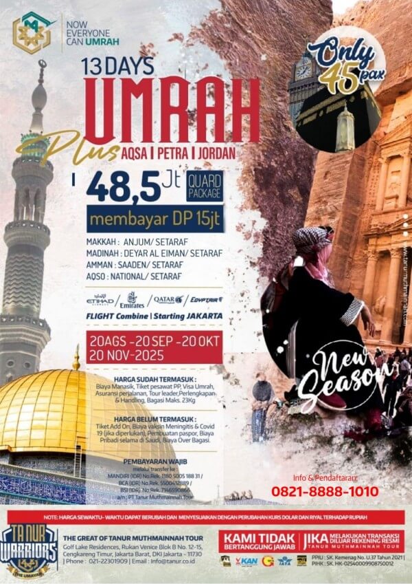 Menawarkan pengalaman umrah plus wisata religi ke Aqso, Turki, Mesir, Dubai, kereta cepat, atau perjalanan wisata lainnya.
