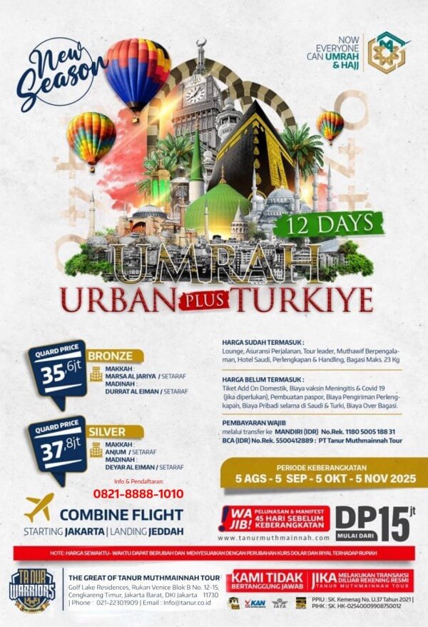 Paket ini menawarkan perjalanan umrah dengan harga terjangkau, termasuk akomodasi hotel bintang empat dan transportasi nyaman.